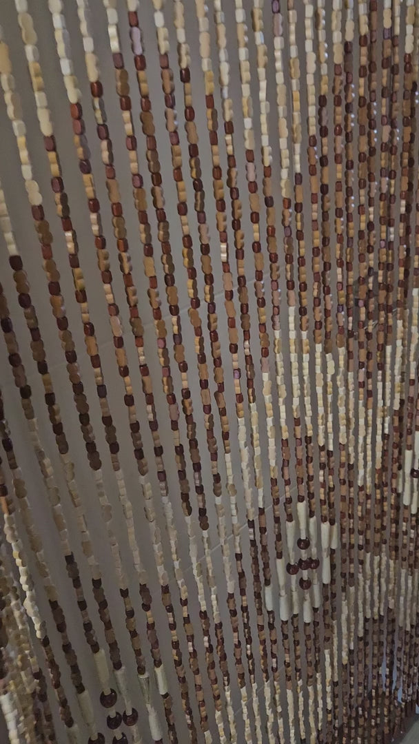A beautiful beaded door curtain consisting of bamboo beads and small wood beads in between which are strung into a thread all by hand. This style is very plain and natural and goes very well with modern and contemporary interior designs. Because of the high number of strands and smaller beads, the finished result looks very full and natural, the strings stay flexible and they will move softly when you walk through them. This curtain has 45 strands which are about 1/2" apart, so there won't be large gaps between the strands. Use as door beads on an existing door, or as a closet curtain, doorway curtain, gateway curtain, partition, window treatment or as an wall art.