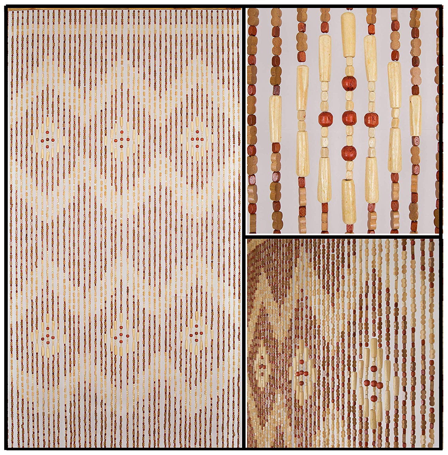 Wood and Bamboo Beaded Curtain 35.5" wide X 77" high - 45 Strands -Pride